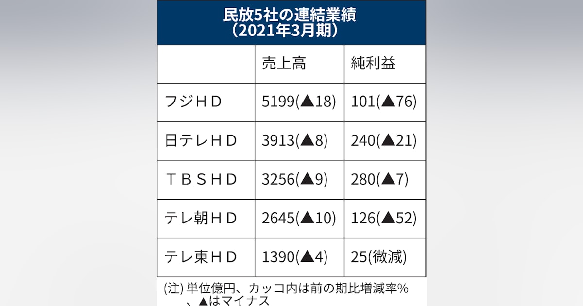 民放5社の21年3月期、全社が最終減益 - 日本経済新聞