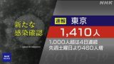 東京都 新型コロナ 新たに1410人感染確認 4日連続1000人超