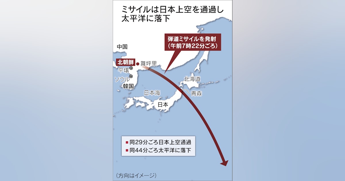 北朝鮮が弾道ミサイル、5年ぶり上空通過 EEZ外に着弾